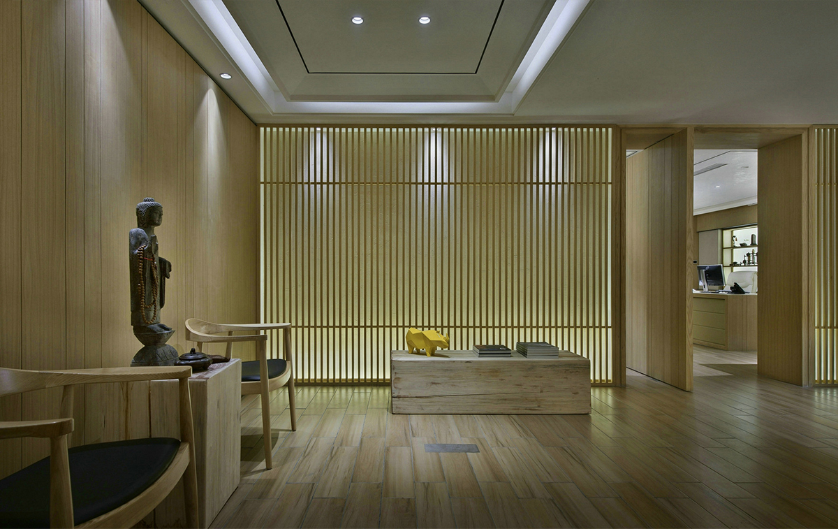 大偉實業(yè)是一家經(jīng)營工藝品配飾的公司,本空間以木為元素,從地面、墻體及屏風都運用了木,巧妙的將其融合到一起。將中國風的“禪”意體現(xiàn)的淋漓盡致,古典與現(xiàn)代的完美結(jié)合,創(chuàng)造高品味的現(xiàn)代中式辦公空間。