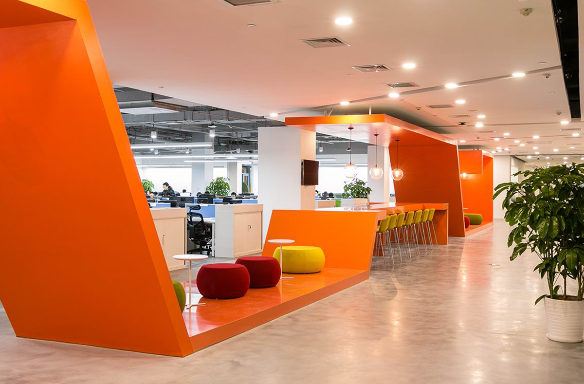 獵豹移動是一家全球領先的移動互聯網公司,辦公空間以活躍的氛圍為主題,以鮮明的色塊劃分空間,體現開放性和多元化。如設計風格的多元融合,空間結構的開放性以及高度的人性化設計理念,富有奇思創意的美學構想不斷地滲透到設計之中。