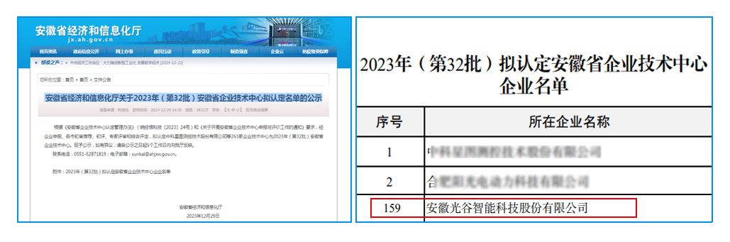 根據《安徽省認定企業技術中心管理辦法》,經企業自主申報、當地政府審核推薦、專家評審、現場核驗和相關部門復審等程序,安徽省光谷智能科技股份有限公司被認定為省級企業技術中心。
